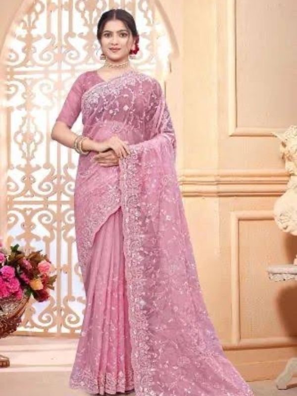 This stylish rose mauve saree is crafted with delicate sequin embroidery and an easy drape design, ideal for ready to wear occasions