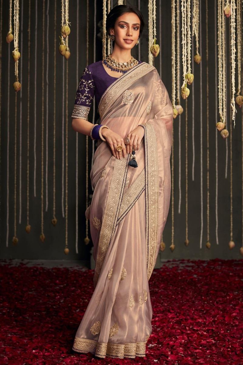 This Saree Is A Head Turner. It Comes With A Contrasting Silk Blouse. This Saree Is Embellished With Gorgeous Embroidery Work. Saree Gives An Elegant As Well As Stylish Look
